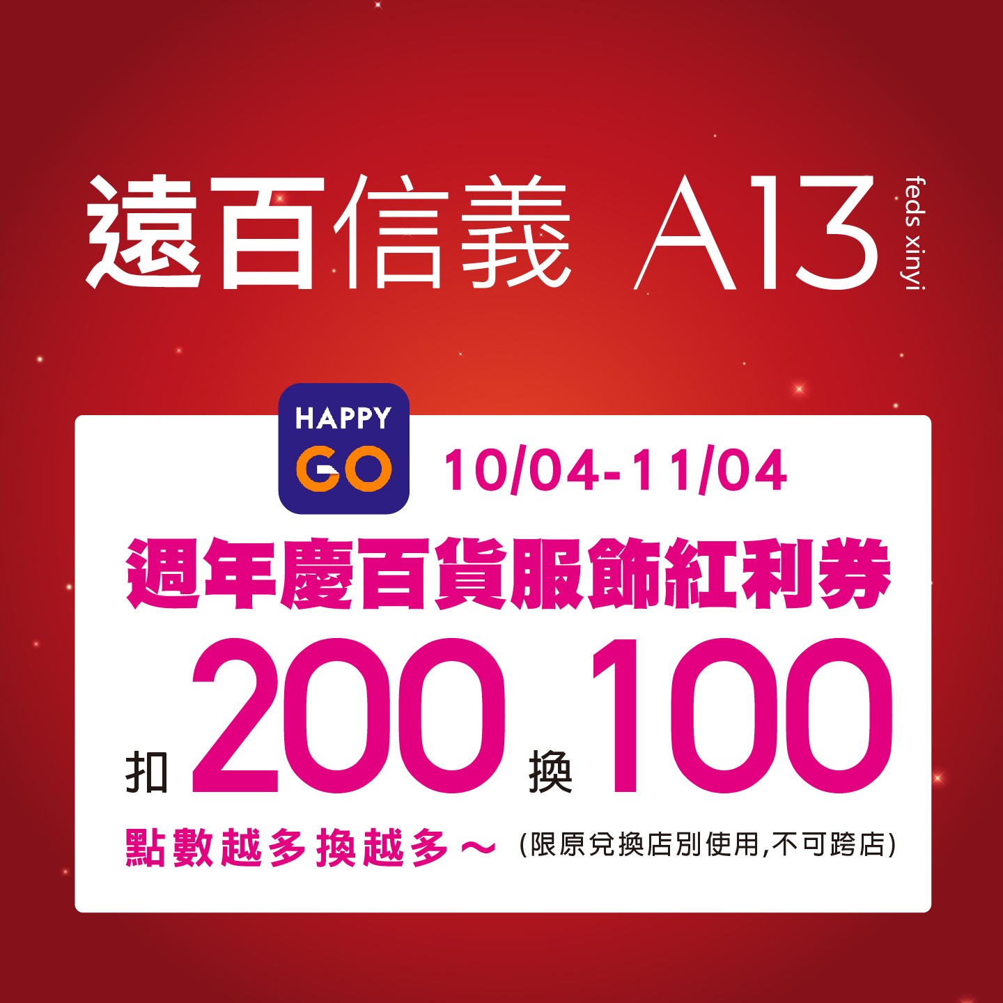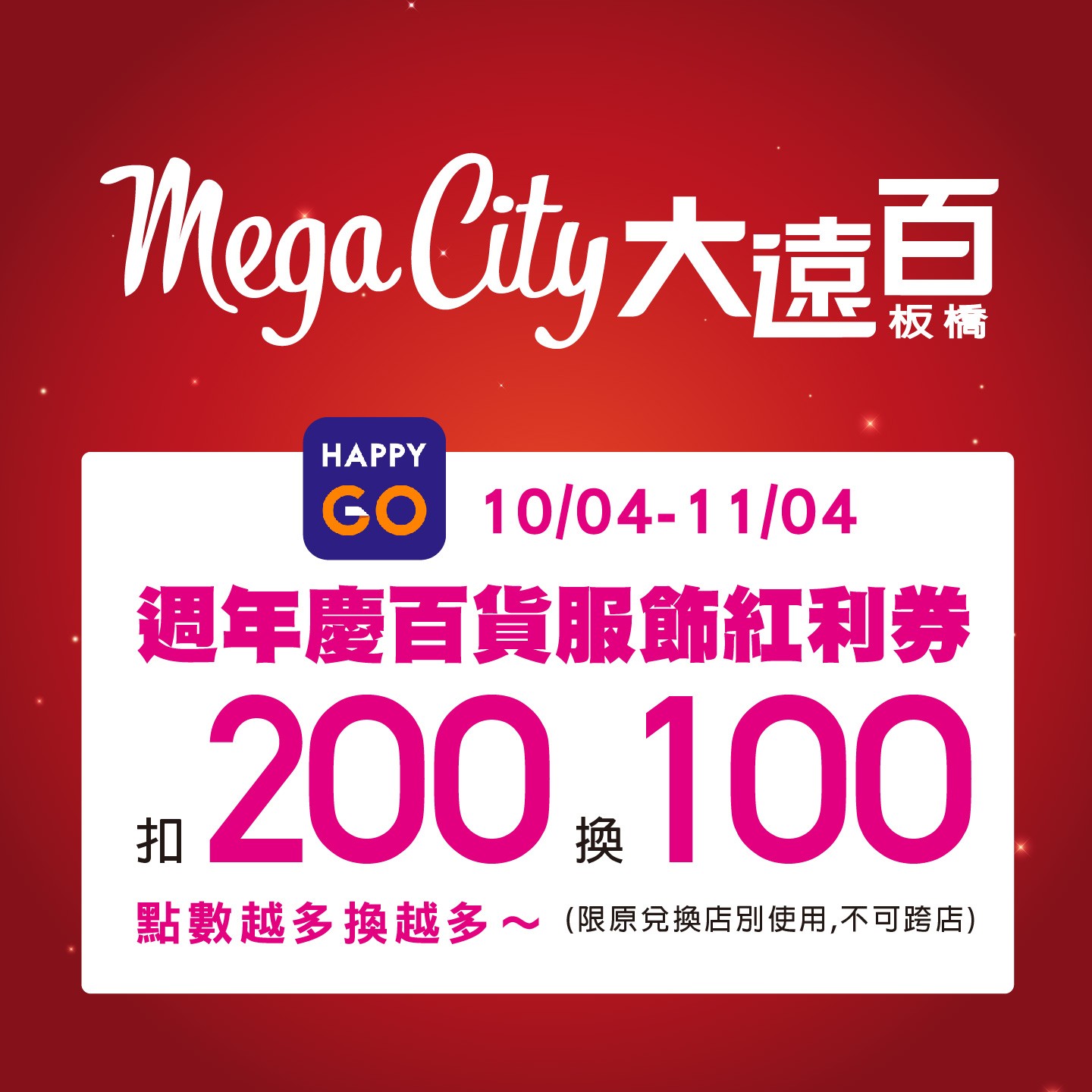 「板橋大遠百」100元週年慶百貨服飾紅利券