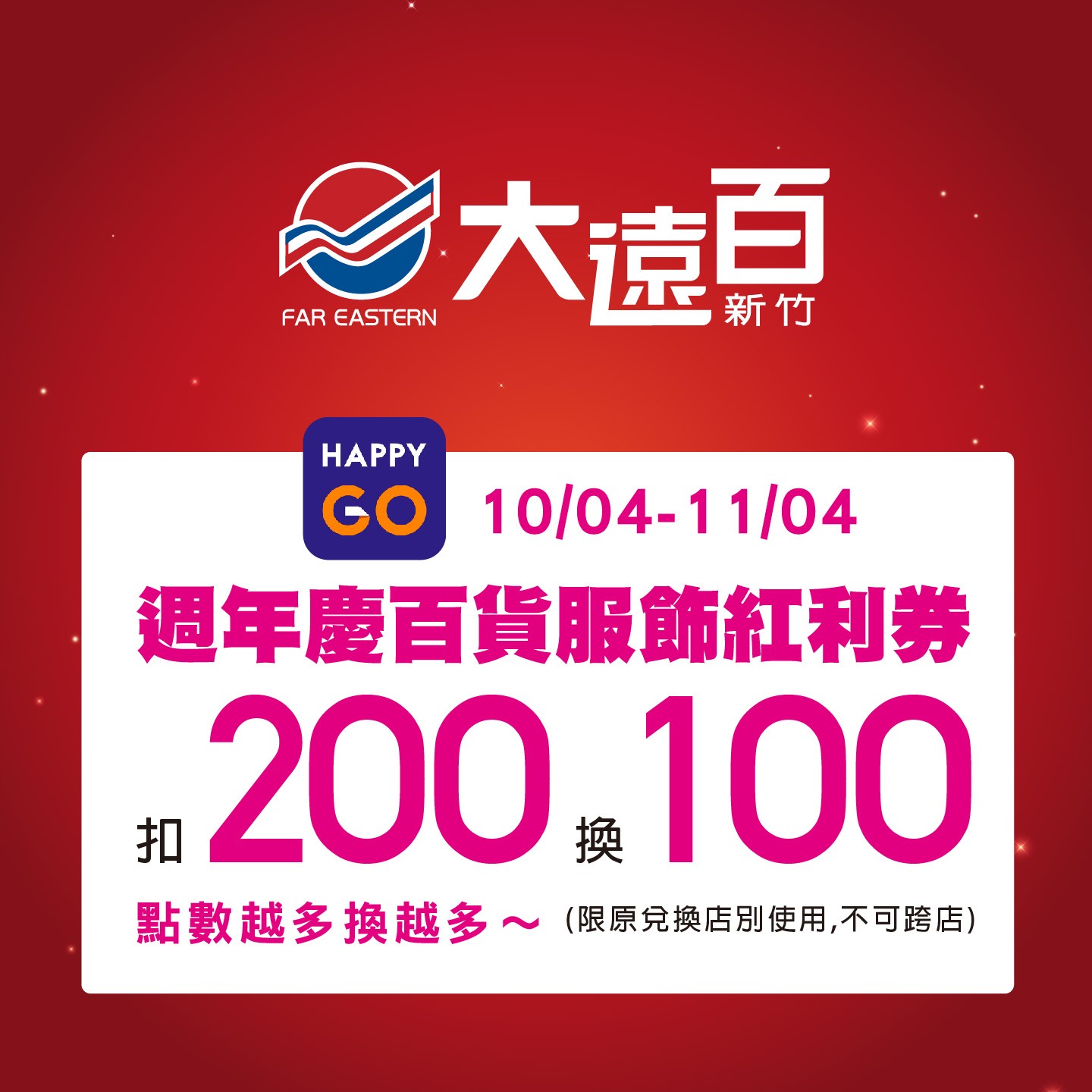 「新竹大遠百」100元週年慶百貨服飾紅利券