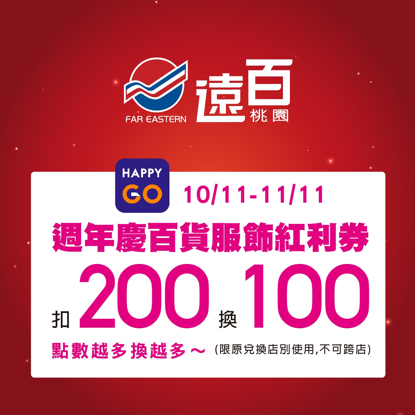 「遠百桃園」100元週年慶百貨服飾紅利券