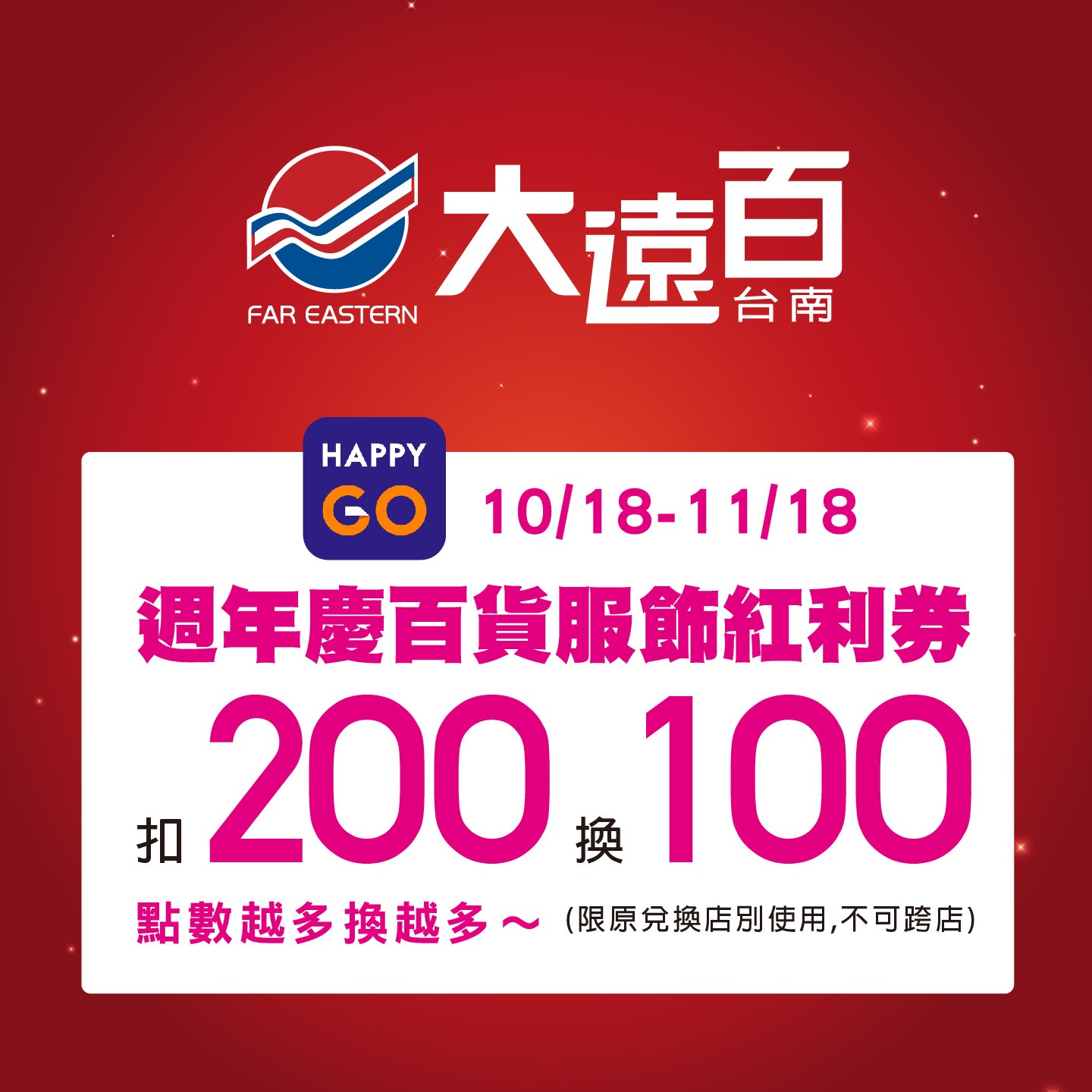 「台南大遠百」100元週年慶百貨服飾紅利券