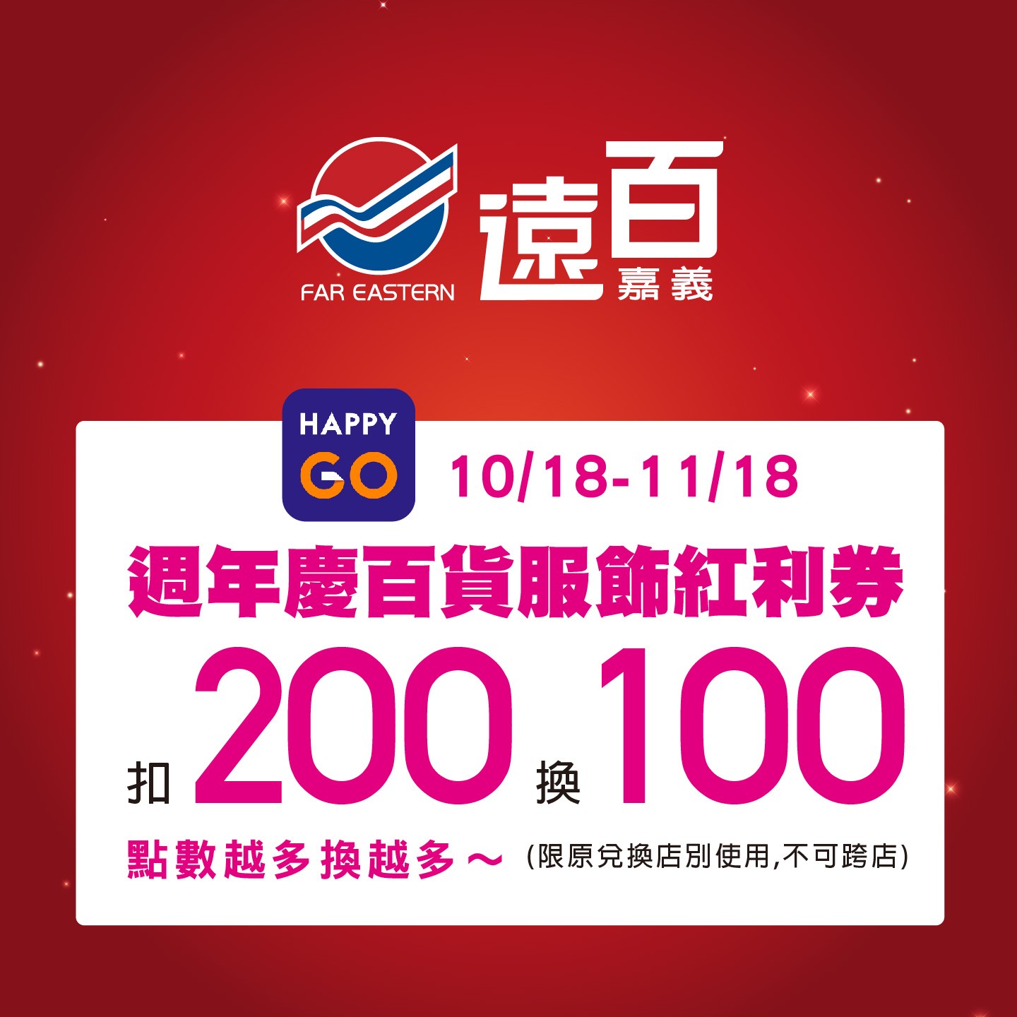 「遠百嘉義」100元週年慶百貨服飾紅利券