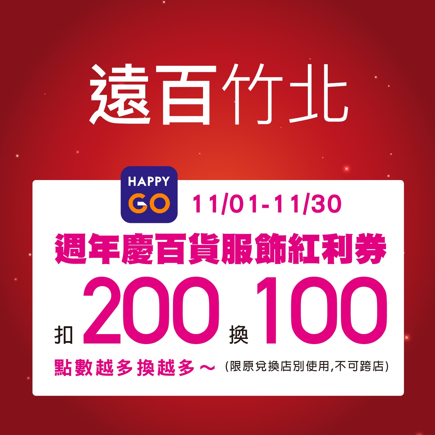 「遠百竹北」100元週年慶百貨服飾紅利券