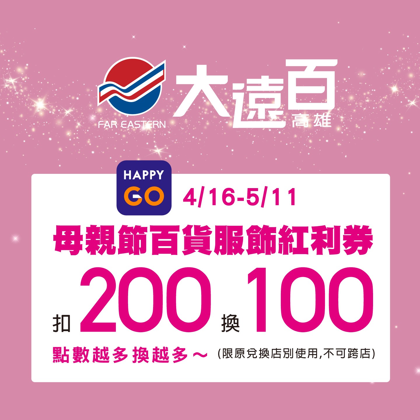 「高雄大遠百」100元母親節百貨服飾紅利券
