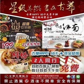 古華花園飯店享美食,持卡享2人同行1人免費!