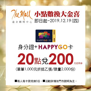 HAPPY GO 20點兌200元抵用券 乙張 (限量2,000份/每人每卡限兌5份)