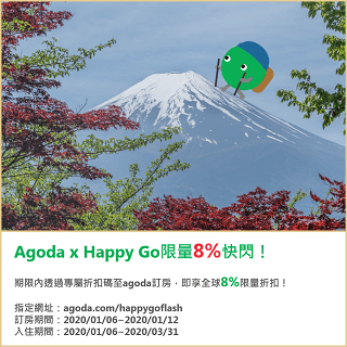 用1點兌AGODA 8%折價券,即可享住房8%折扣回饋唷!