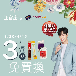 使用HAPPYGO點數3點免費任選正官庄明星商品乙份!