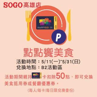 SOGO高雄店推出「點點饗美食」,只要手機滑起來 食指動一動,各式美食等你來品嚐,快來兌換唷!