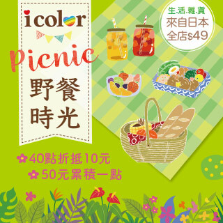 至 i color適用HAPPY GO之門市單筆消費滿599元,贈50點+超可愛刺蝟保冷袋