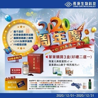 長庚生技2020感恩周年慶,消費滿千送百元抵用券!