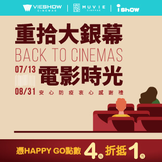 iShow或HAPPY GO會員至全台威秀影城或MUVIE CINEMAS消費累點,