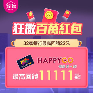 ●兌點方式:於momo購物網完成HAPPY GO綁定,即享40點折抵10元,折抵無上限!