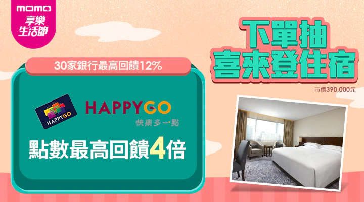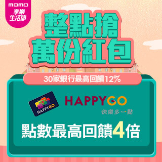 ●兌點方式:momo購物完成HAPPY GO綁定,卡友凡使用點數折抵消費,享4點折抵1元,最低10元,折抵無上限!
