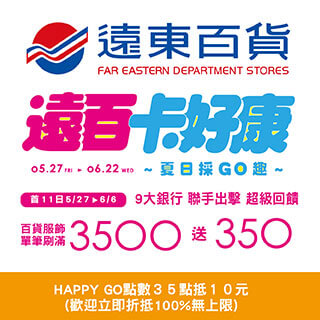 ※抵用券使用方式:限於原兌換店5/27-7/4百貨服飾單筆消費十足抵用一張(超市/餐飲/書局及部份專櫃除外)