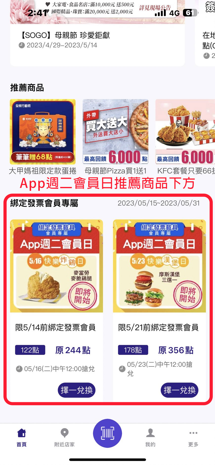 開啟HAPPY GO App推薦商品下方區域: