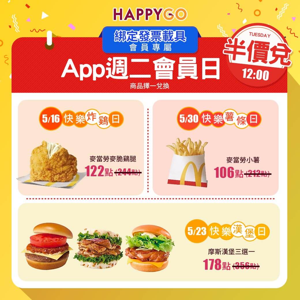 5/30 (二)12:00 快樂薯條日-麥當勞小薯限量700份 (兌換點數106點)