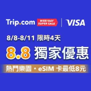 【Trip.com】VISA專屬代碼,準時開搶$8888元!