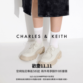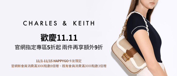 2. 此為HAPPY GO卡友專屬活動,即日起至CHARLES & KEITH台灣官網購物 (https://www.charleskeith.com/tw)並於結帳頁面輸入HAPPY GO帳號綁定的身分證字號即完成活動步驟。