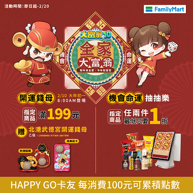 拜年新招!全家會員APP點數變紅包 初一起消費滿額送北港武德宮開運錢母