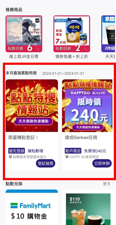 ▶於APP下方的本月最強累點特搜主題版位參加行銷點數活動即有機會獲得獨得5,000點喔~