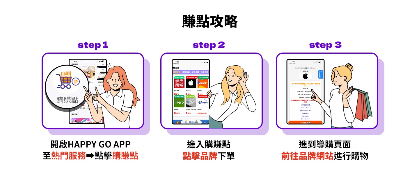 (1) 透過HAPPY GO購賺點(不含蝦皮專區、foodpanda)消費且取得回饋卡友即於當月起享有購賺點會員資格。