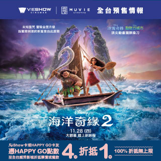 11/12(二)中午12:00過後開放《海洋奇緣2》11/28(四)-12/02(一)之部分場次預售。 (線上購票於中午12:00-12:30開放)