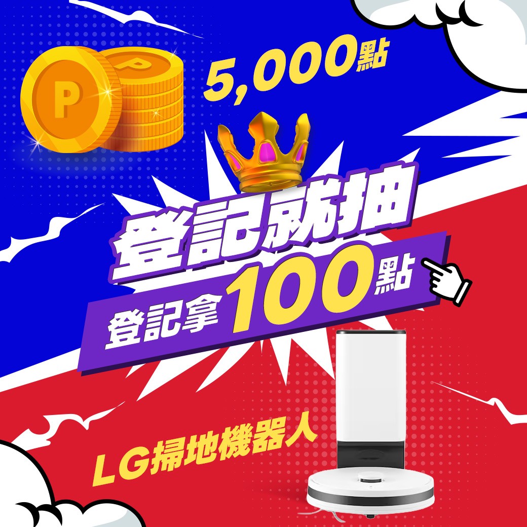 【女王購物節】登記拿100點 ! 再抽LG掃地機器人