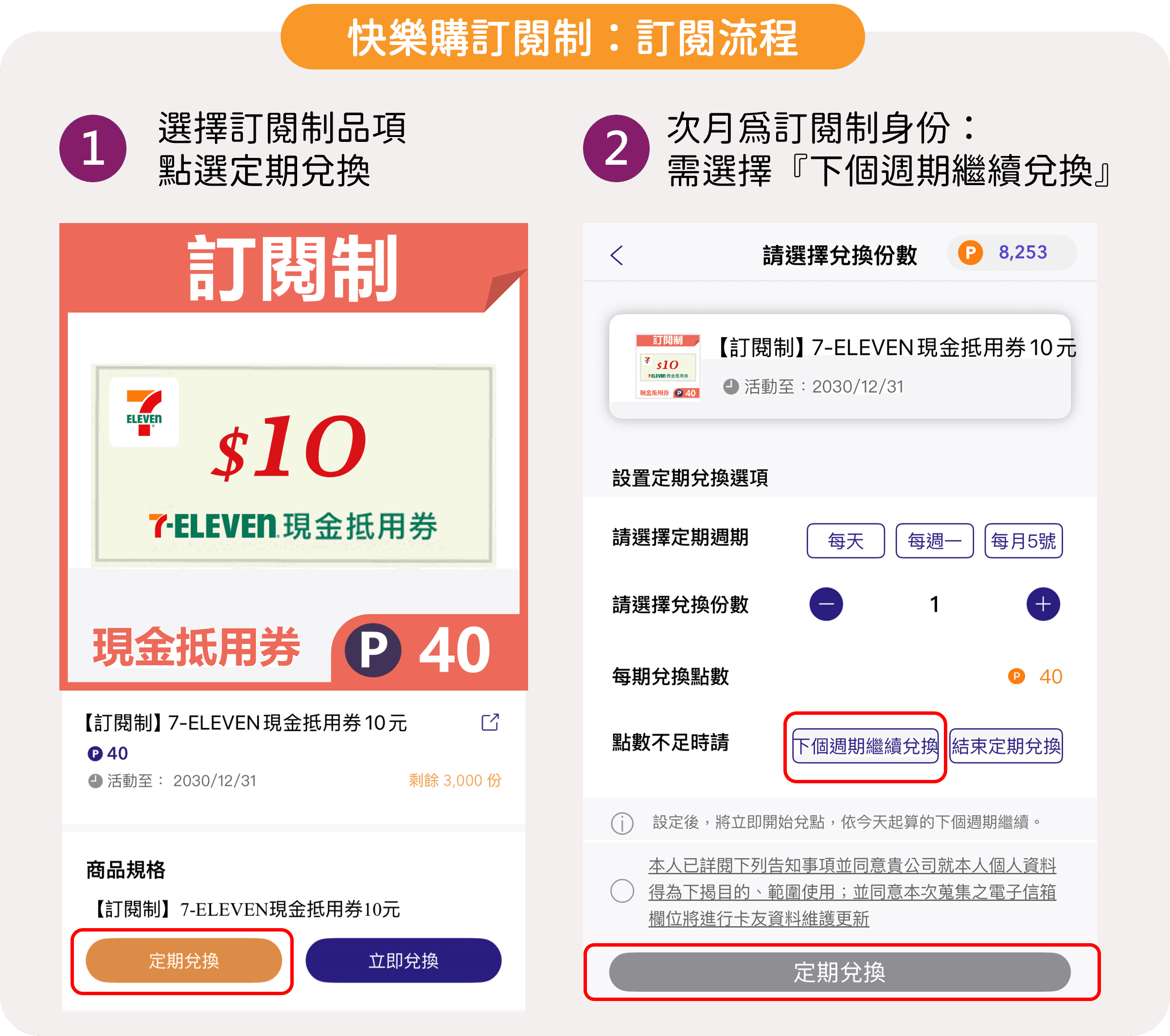 .訂閱時需選擇『下個週期繼續兌換』,次月回饋時才為訂閱制身份。
