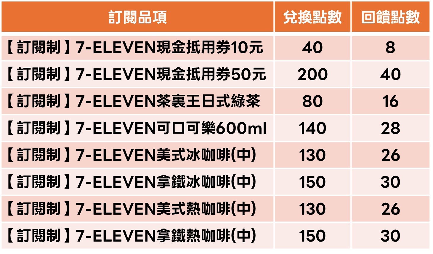 .每月兌點品項扣點成功,且次月回饋前還是訂閱制身份。
