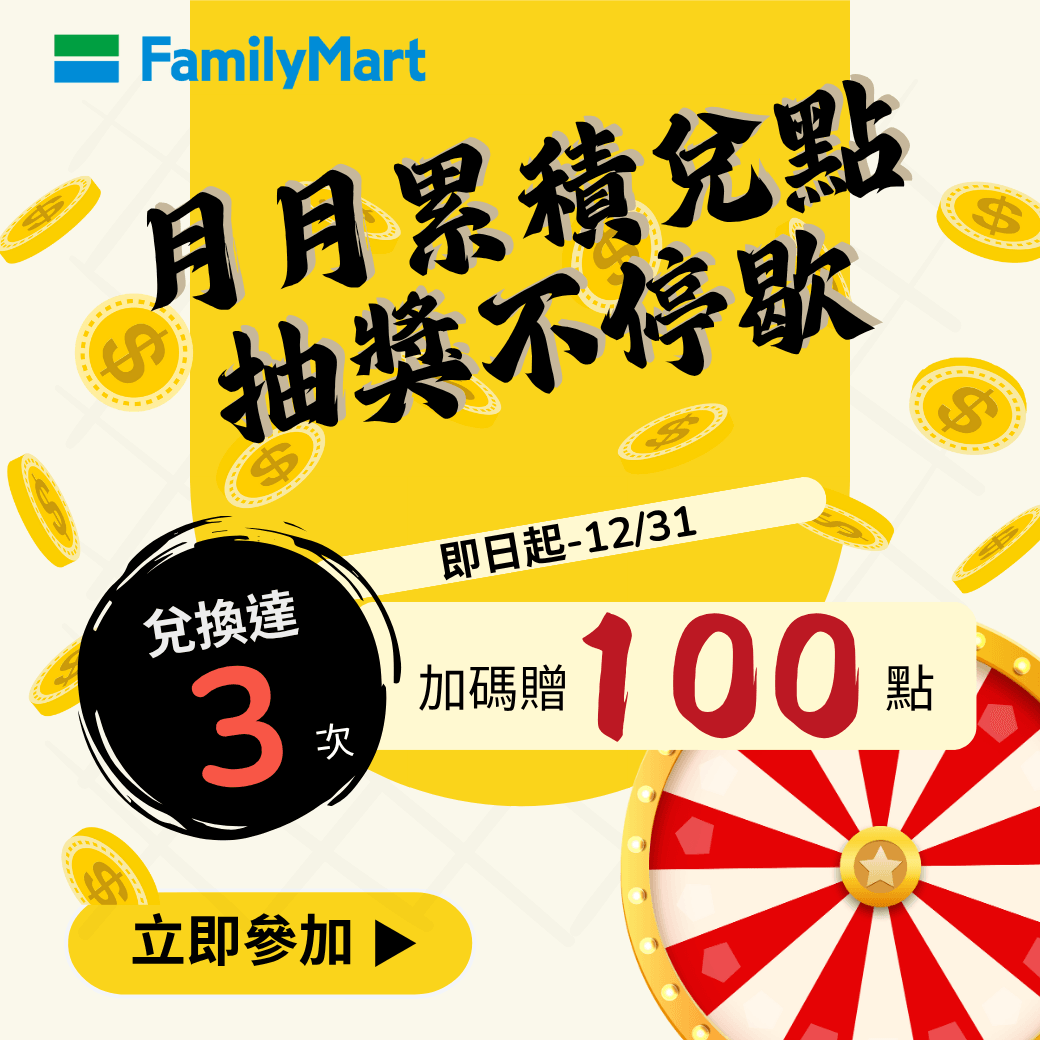 ◆凡兌換達3次者,加碼贈100點 (限贈前100名)