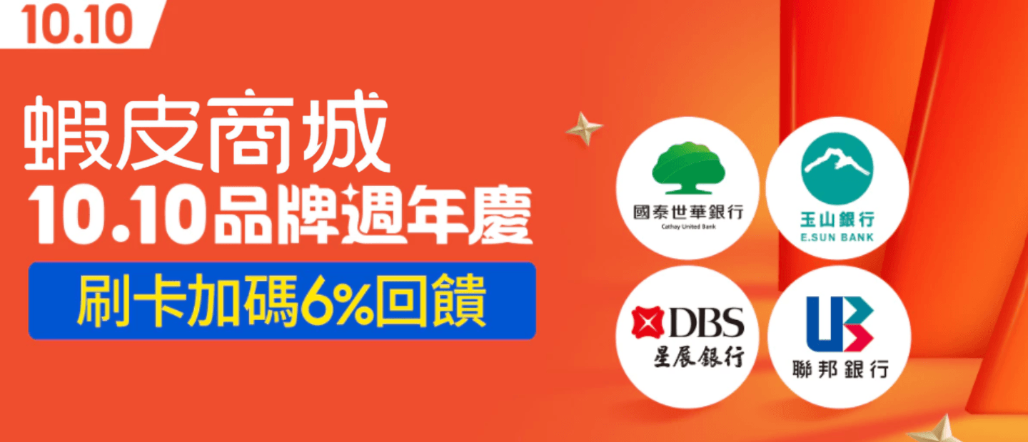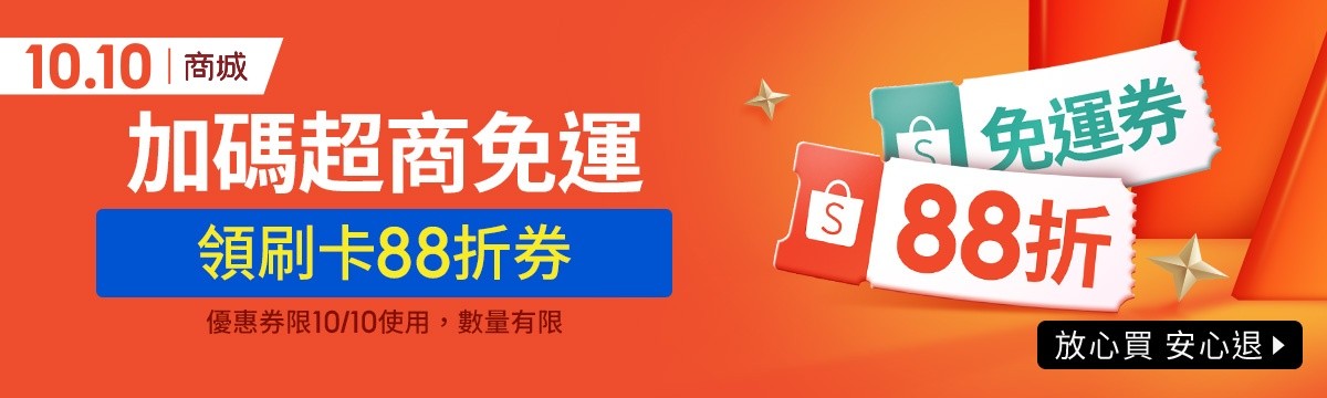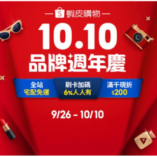 10.10蝦皮商城品牌周年慶|下單賺點、享免運優惠