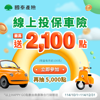 🎁加碼抽:投保車險即抽5,000點(每月1名,共3名)