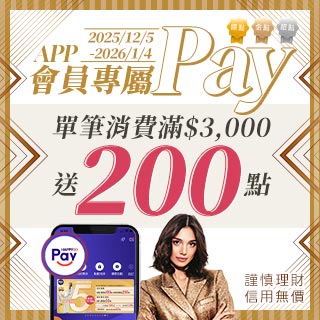 鑽點/金點/銀點會員限定!使用HAPPY GO Pay單筆消費滿$3,000贈200點