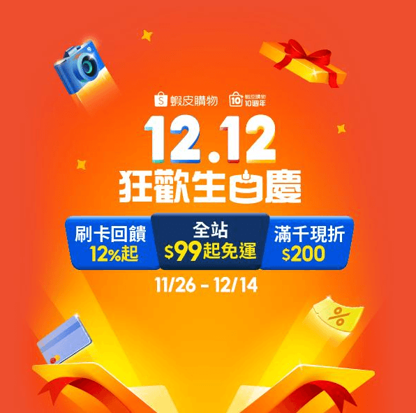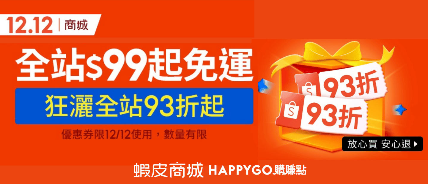 蝦皮商城12.12購物節|年末回饋享折扣活動快來準備交換禮物、對自己好一點!!