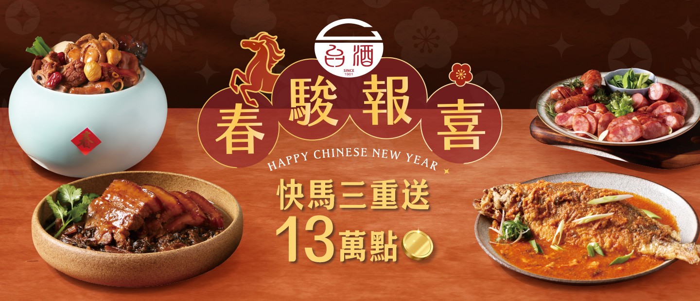 透過本頁面連結至台酒購物網購買年菜、年節商品(購買範圍為福駿盈門/春駿報喜頁面,不限品項)