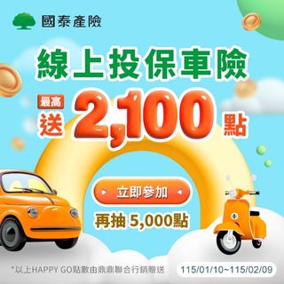 🎁加碼抽:投保車險即抽5,000點(每月1名,共3名)