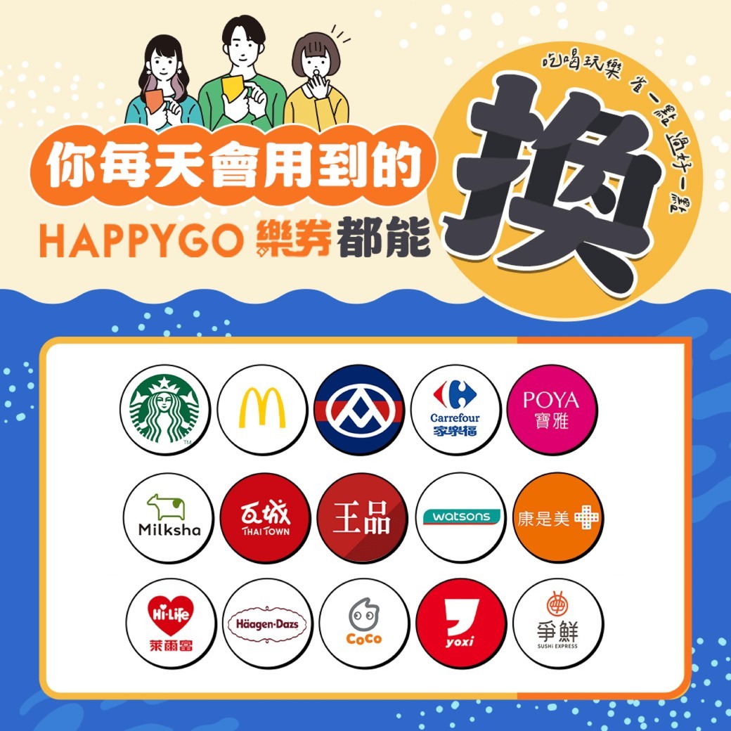 ※ 品牌圖示僅供參考,實際可兌換商品請依 HAPPY GO App 內公告為準。